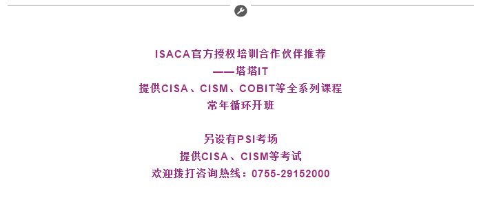于2019年7月11日(星期四)14:00-17:00,ISACA華南社區(qū) “數(shù)字化轉(zhuǎn)型時代下的IT審計”知識分享會在深圳市中信銀行大廈召開?!舅蘒T,ISACA官方授權(quán)培訓合作伙伴】