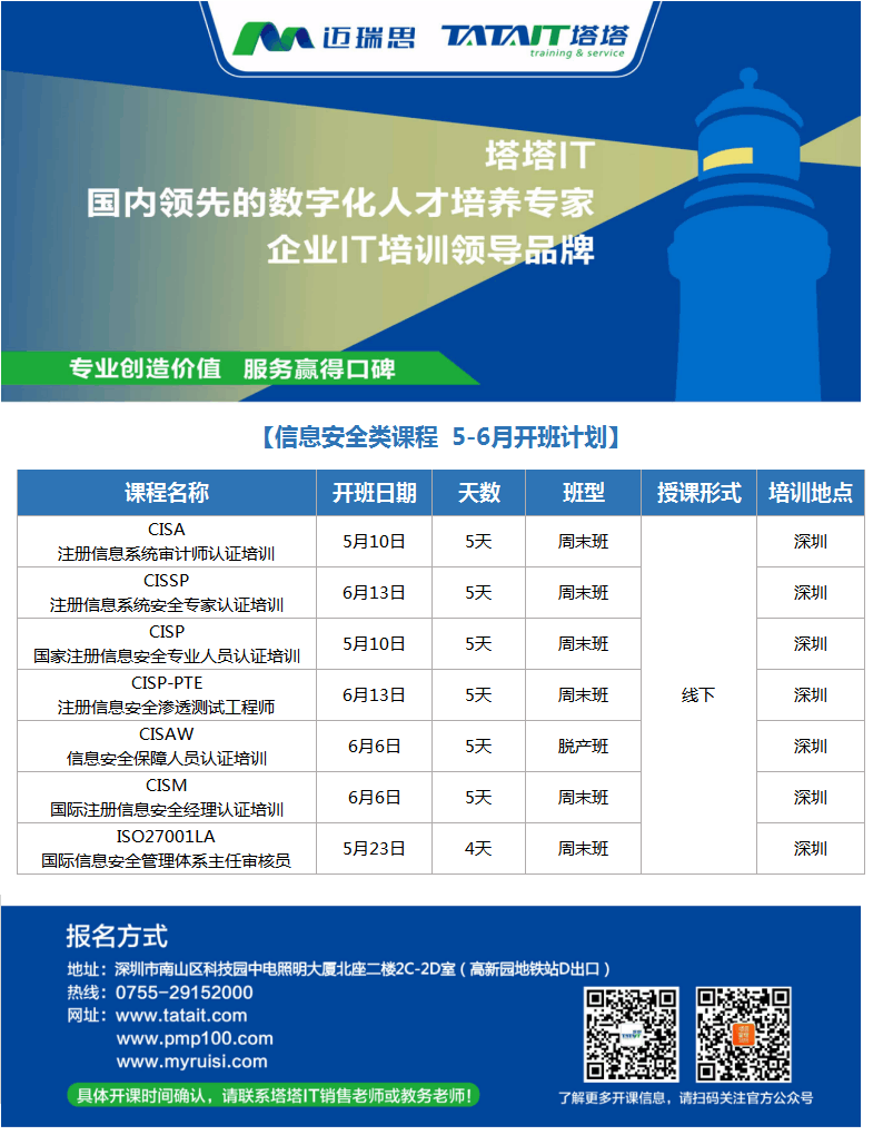 咨詢郵箱:tata@tatait.com 咨詢電話:0755-29152000 新浪微博:@塔塔IT 微信:添加公眾賬號“塔塔IT”加關注!塔塔IT為邁瑞思旗下子品牌,專注高端IT培訓。